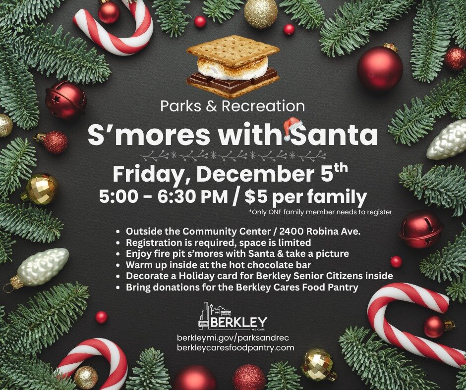 Roast s'mores outside with Santa under a festive winter scene, and don't forget to capture the moment! Getting cold? Head inside to warm up at the hot chocolate bar with delicious toppings while decorating holiday cards for our wonderful Berkley seniors.