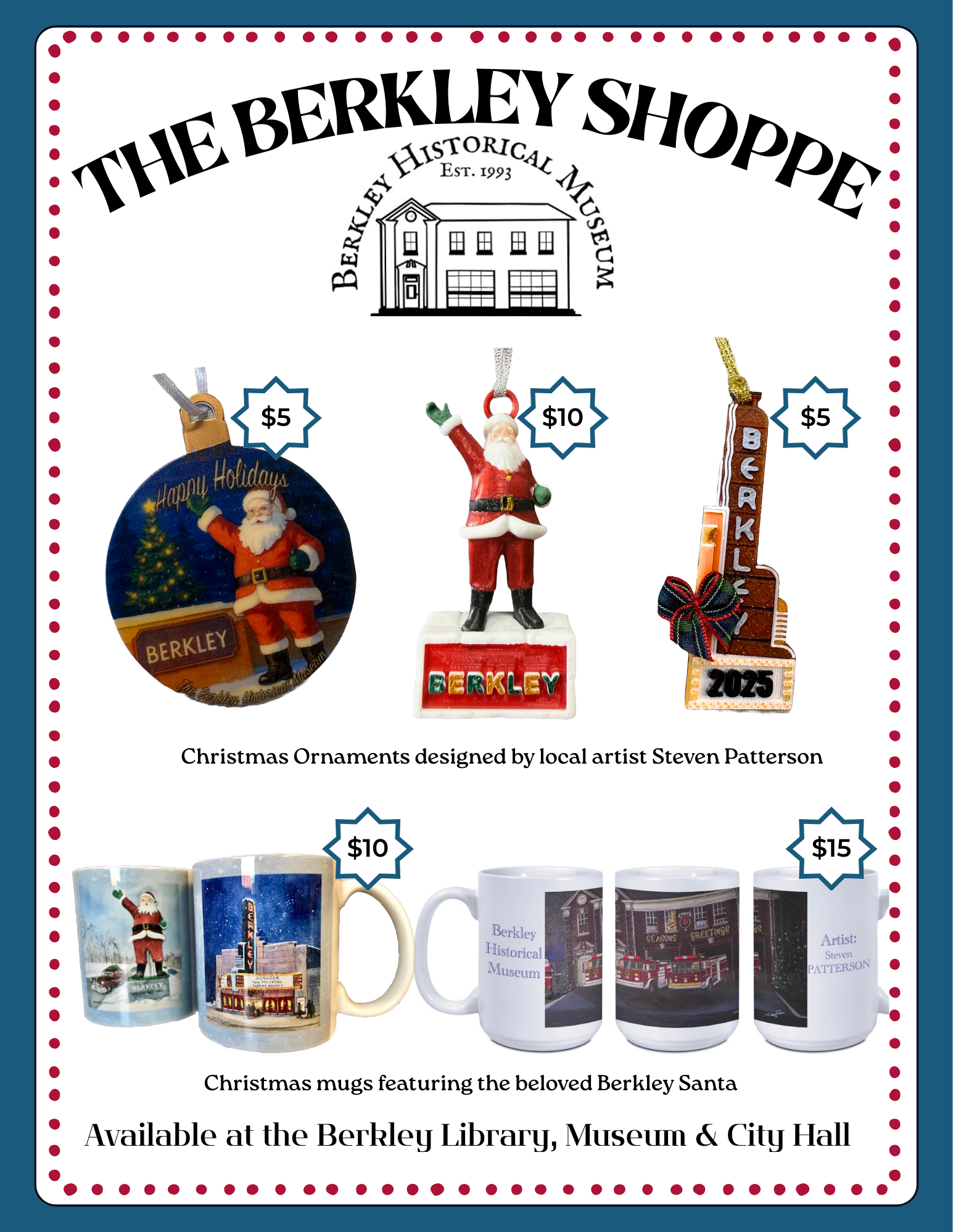 New Berkley themed Christmas ornaments now available! Available at the Library, City Hall and the Museum.
